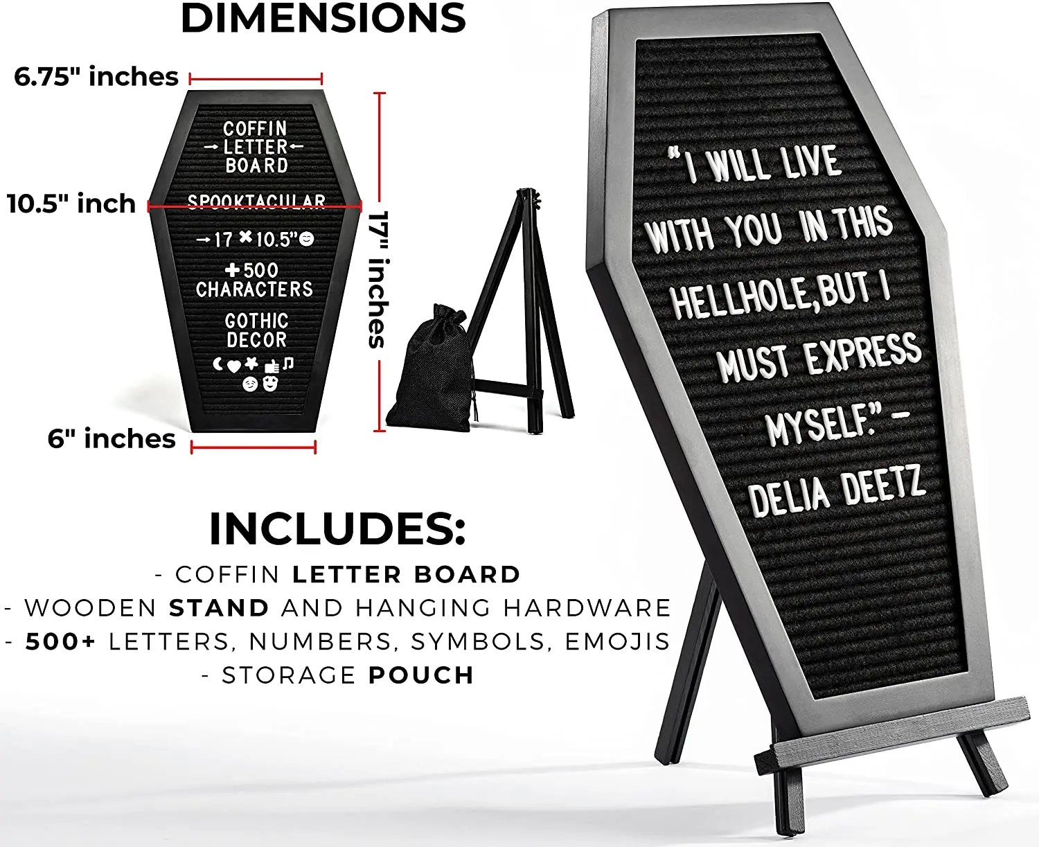 Black Felt Coffin Letter Board Gothic Decor Message Board For Home 17x10 5 Inches 500 White Changeable Characters Emojis 1 Storage Pouch Hanging Wood Frame For Wall Or Table Top Stand Included Walmart Com